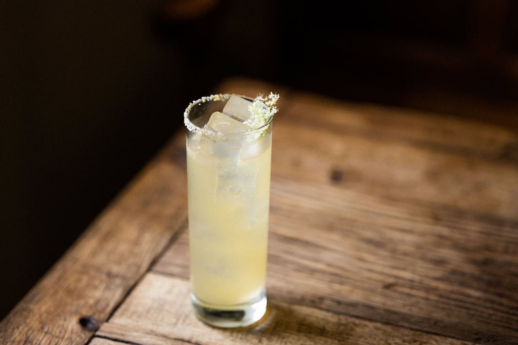 Harry says: ‘A Paloma traditionally uses fresh grapefruit juice, but to reduce the use of citrus we’ve made a grapefruit-like cordial from the zest and juice. Our Paloma also features preserved lime juice (made from leftover lime wedges encased in salt and coriander seeds to draw out the moisture) and a grapefruit sherbet with a little sugar and a touch of citric acid. And, as tequila pairs perfectly with salt, we also add a touch of salt.’