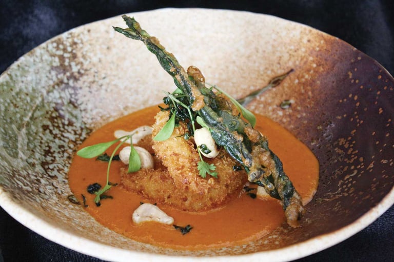 Sample starter: Thai spiced fishcakes, Thai-style salad, soy and ginger dressing