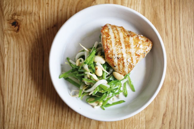 Tim Barnes, head chef at Outlaw’s Fish Kitchen in Port Isaac, shares his recipe for marinated monkfish cheek with a mangetout, beansprout and peanut salad