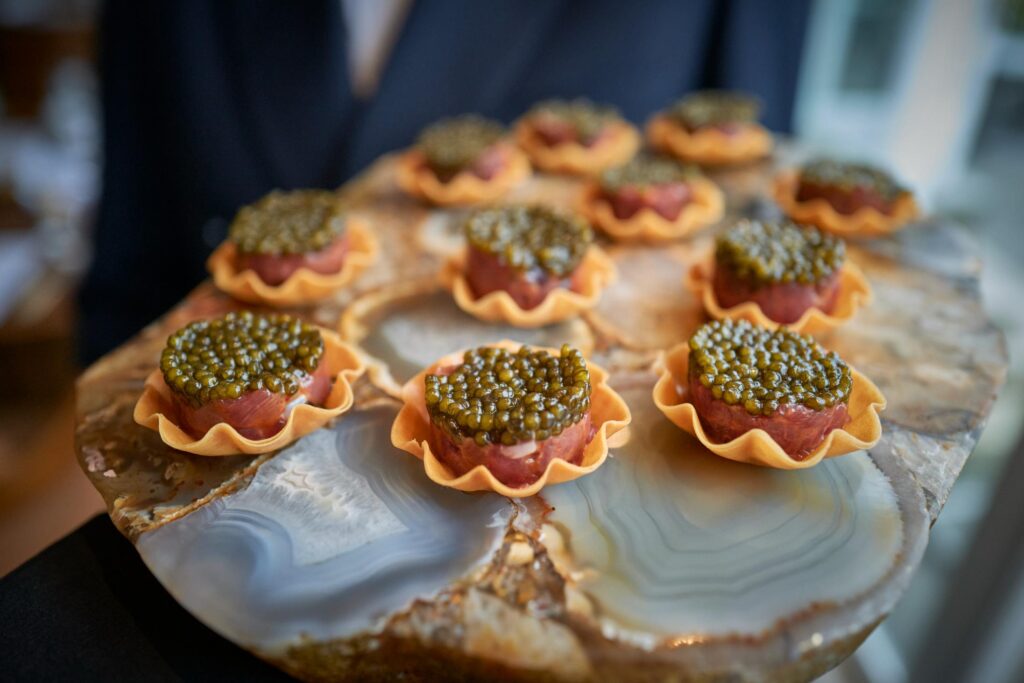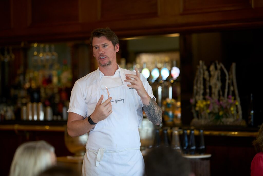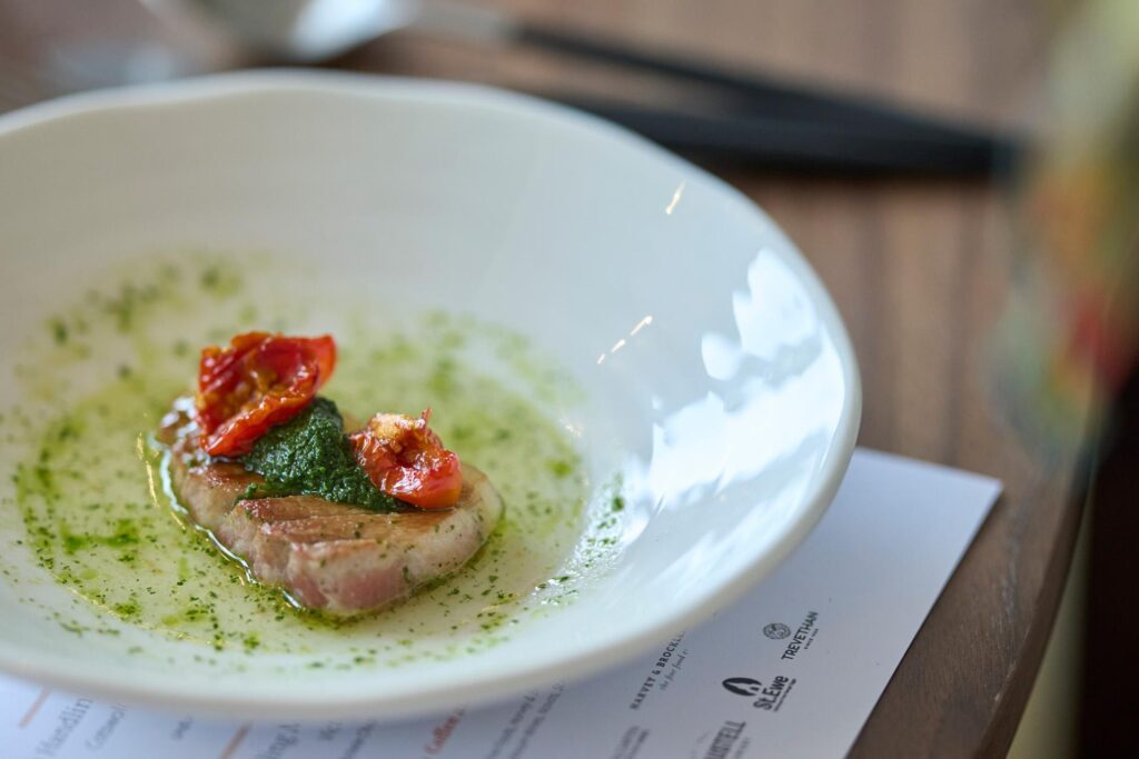 In traditional Trencherman’s style, the multi-course meal was created by Trencherman’s Guide chefs. The event opened with a Champagne reception and canapés, plus gin and tonics from Trevethan and Navas, followed by an exceptional lunch prepared by chefs Adam Handling and Jamie Park of Ugly Butterfly, Elly Wentworth of Millbrook Inn and Fowlescombe Farm and Ben Champkin of Catch at the Old Fish Market.