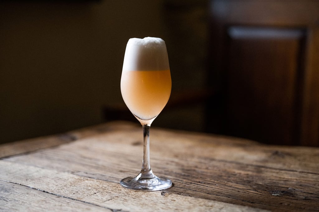 Sour cocktails are bang on-trend and this rhubarb, ginger and tagetes (marigold) creation raises the bar to delicious new heights. It’s made using an own-made ginger and rhubarb cordial, the leftover pulp from the fruits used to infuse its vodka base, and hand-picked tagetes. The cordial and vodka are then combined with citrus flavours and the egg white used to create the fabulous foam for which sours are celebrated: ‘Light and simple,’ says Harry.